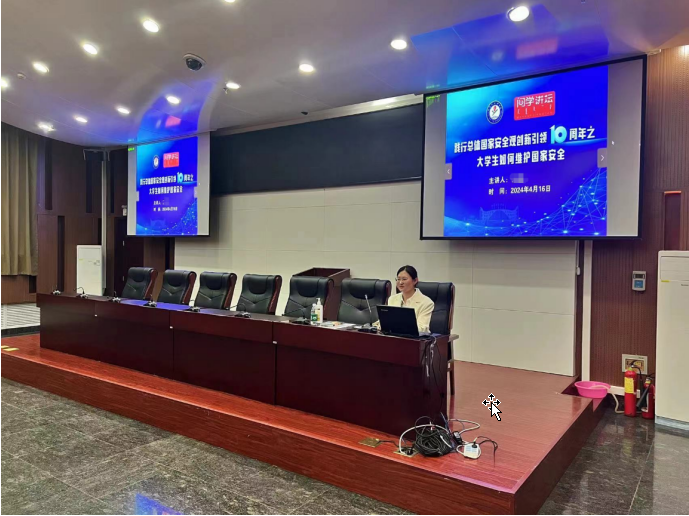 张警官向师生们详细介绍了国家安全的定义、内涵及其重要性,并通过近年破获的间谍案件向师生列举了敌对势力窃取我国重要情报和破坏国家安全的种类和方法,以及大学生如何维护国家安全的手段。旨在提醒师生在日常生活及工作中要时刻保持警惕,积极参与到国家安全的守卫战线。