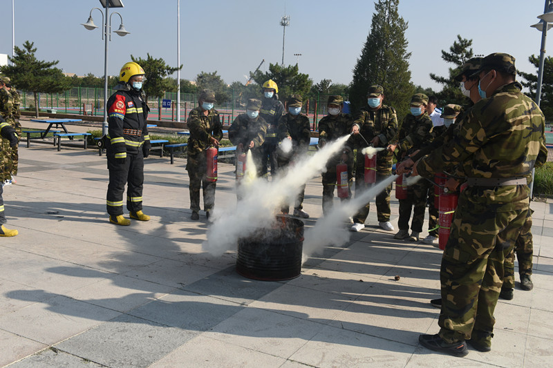 随后,由消防队员为参训学生进行了安全教育和消防器材展示,重点对火灾发生前后的火势发展及逃生自救方法进行了重点讲解,并对消防常用灭火器的使用进行了讲解。讲解结束后,同学们纷纷上场进行灭火实操体验。