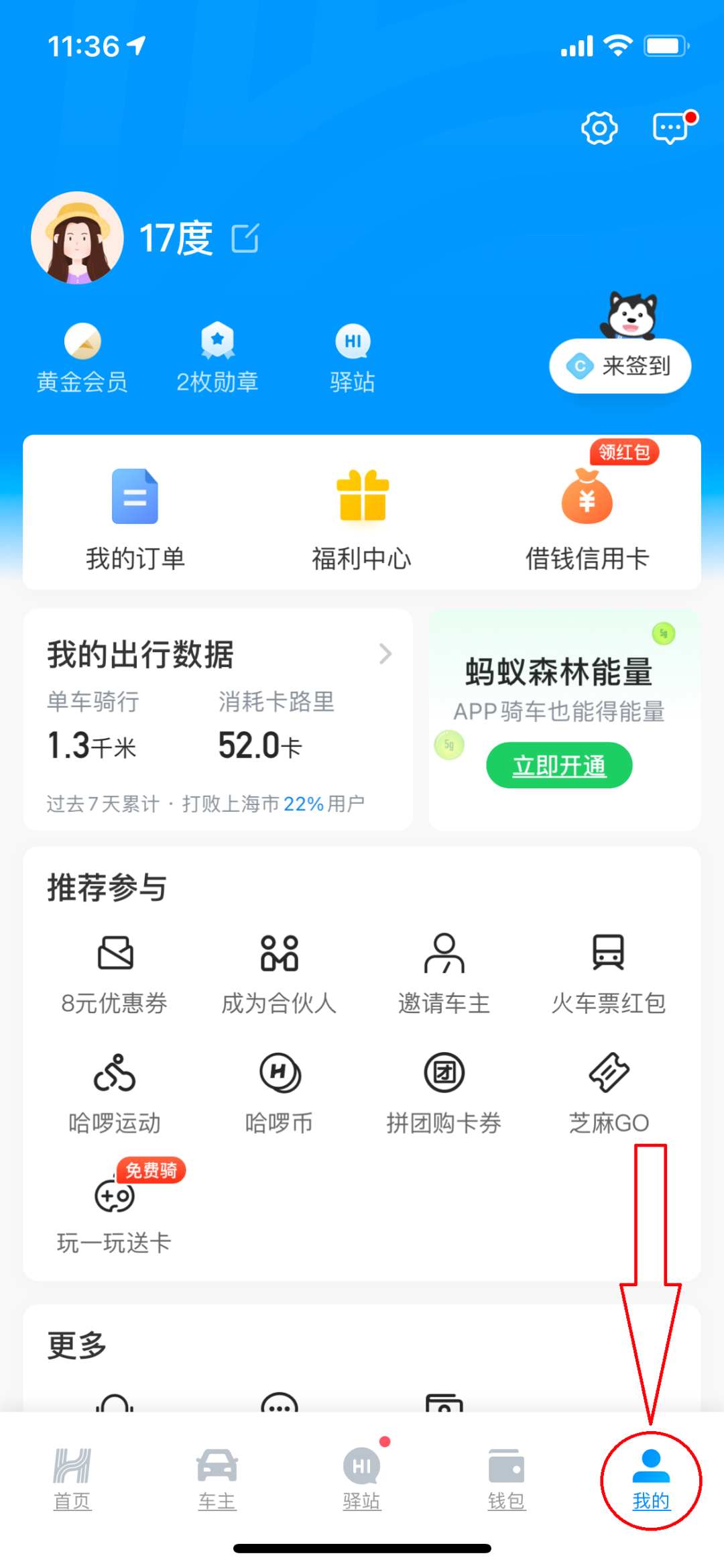 微信扫描二维码--学生认证--哈啰出行APP--我的--学生中心--领取3天免费骑行卡。