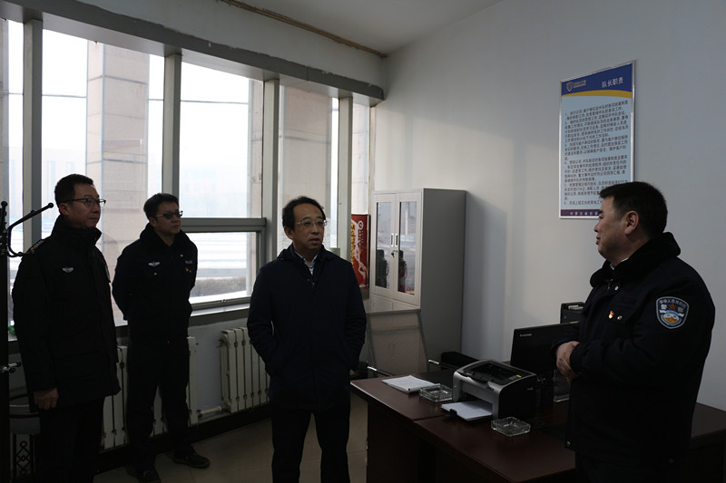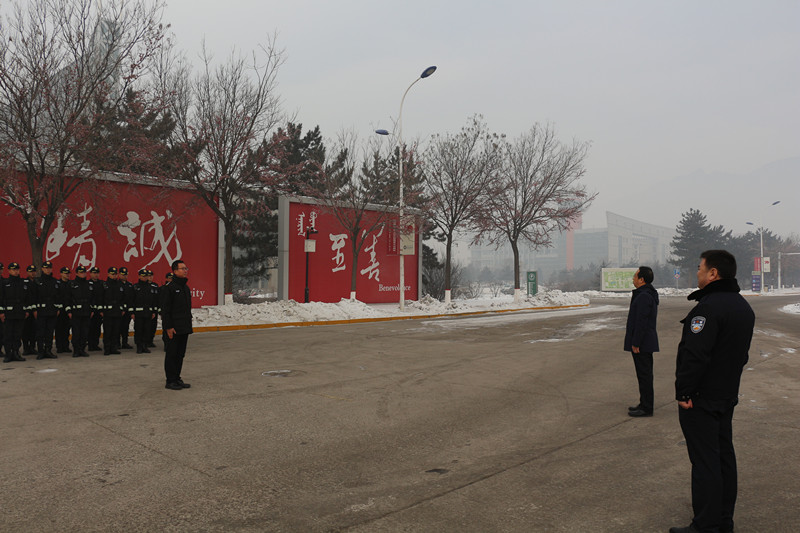 2020年1月16日上午,学校副校长鲁海文同志在金山校区对学校安保工作进行调研,保卫处处长朝鲁、副处长李洪凯、治安科全体人员及威信安保公司负责人参加了此次检查。