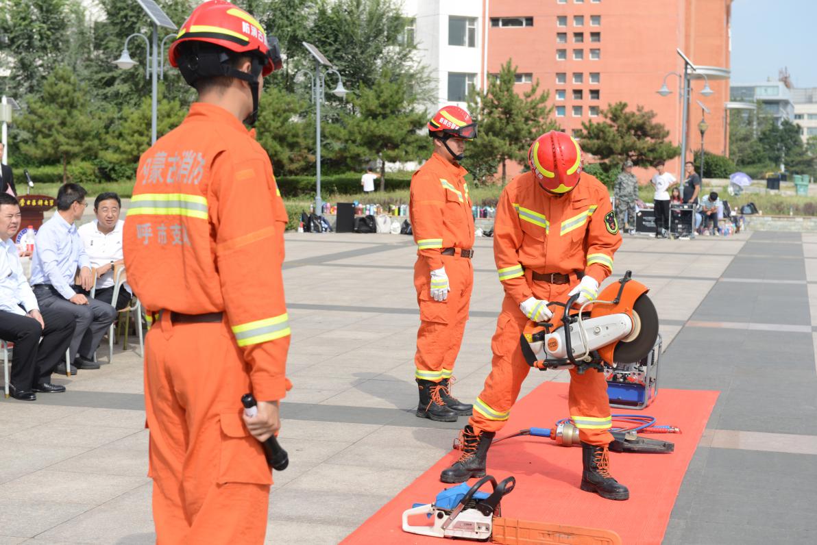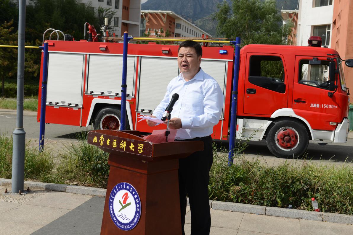 为扎实推进消防宣传“进军训”工作,学校于9月5日下午在金山校区生活区广场举行了以“消防事关千万家,平安和谐靠大家”为主题的第十届“应急疏散逃生演练”活动,正在军训期间的2700余名新生参加了本次演练活动。本次活动由内蒙古医科大学和公安消防金山开发区中队联合开展,学校副校长阿古拉,学生处、保卫处负责人,以及各学院分管学生工作的领导、辅导员,2018级军训团所有教官,全体学生辅导员、公寓管理人员参加了活动。