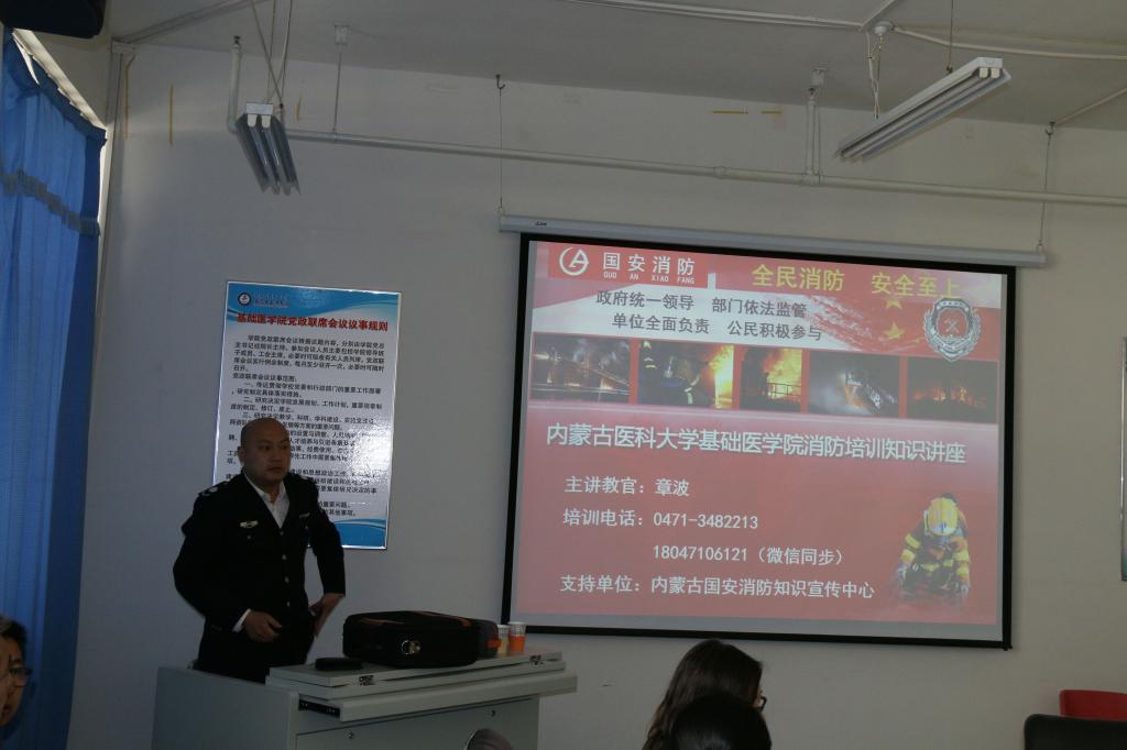 此次培训邀请了内蒙古国安消防知识宣传中心教官章波主讲,以近年来全国发生的火灾案例为切入点,从安全用电、防火基本知识、实验室火灾特点、火场救援与逃生自救、灭火器的使用及维护等方面进行了讲解。