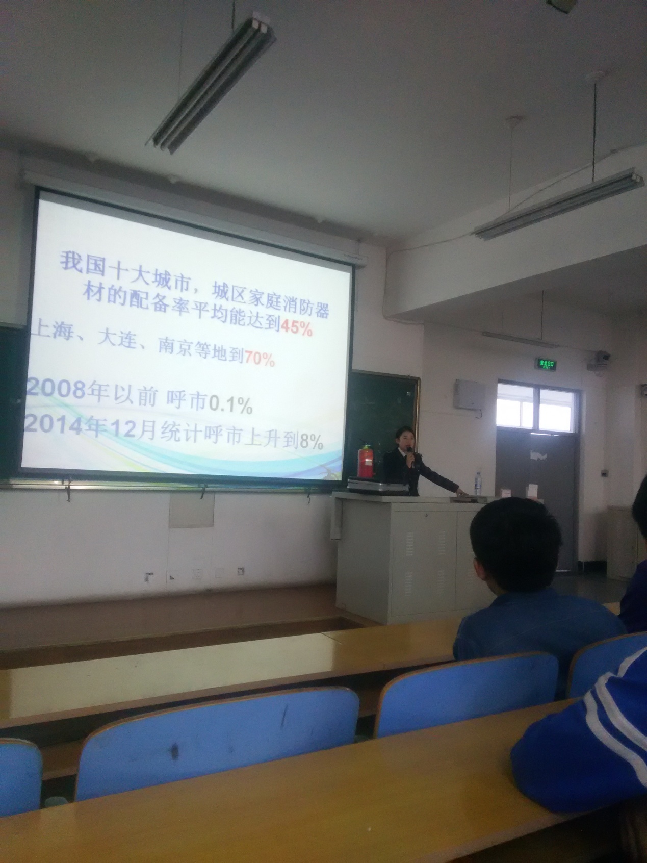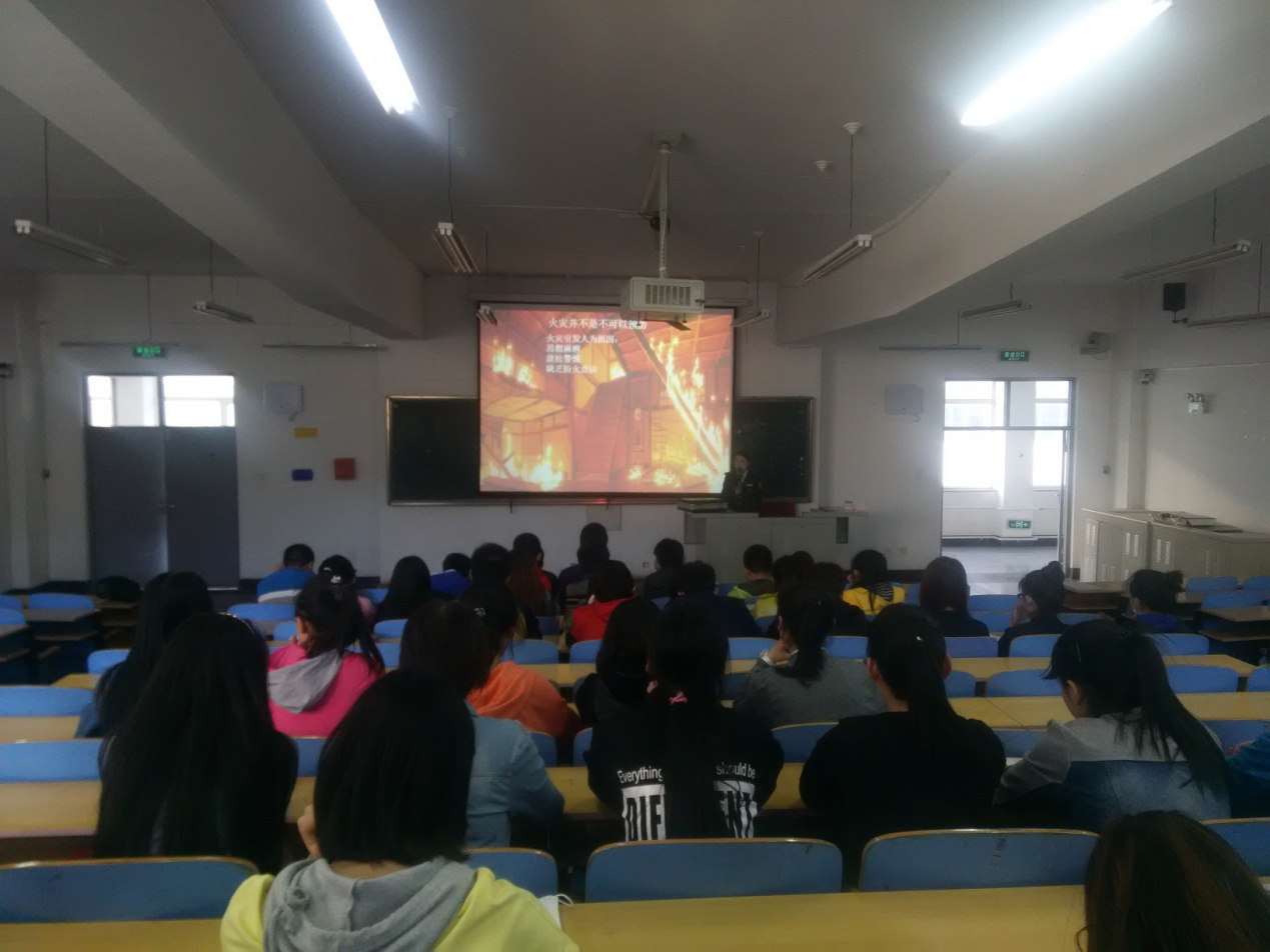 4月22日下午6点校卫队安全活动月的消防安全主题讲座在教学北楼开始。