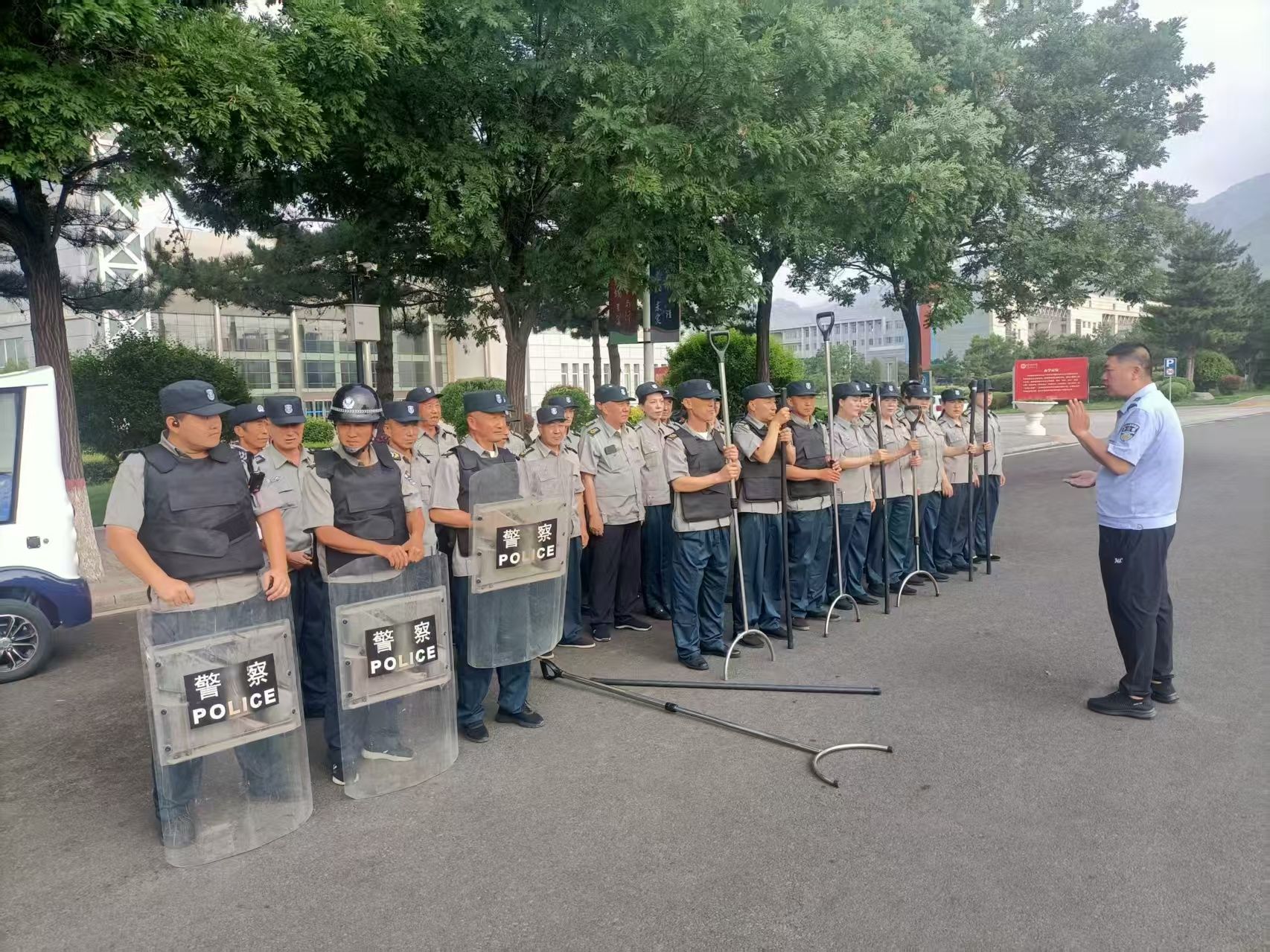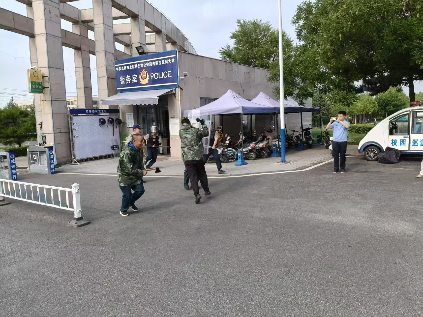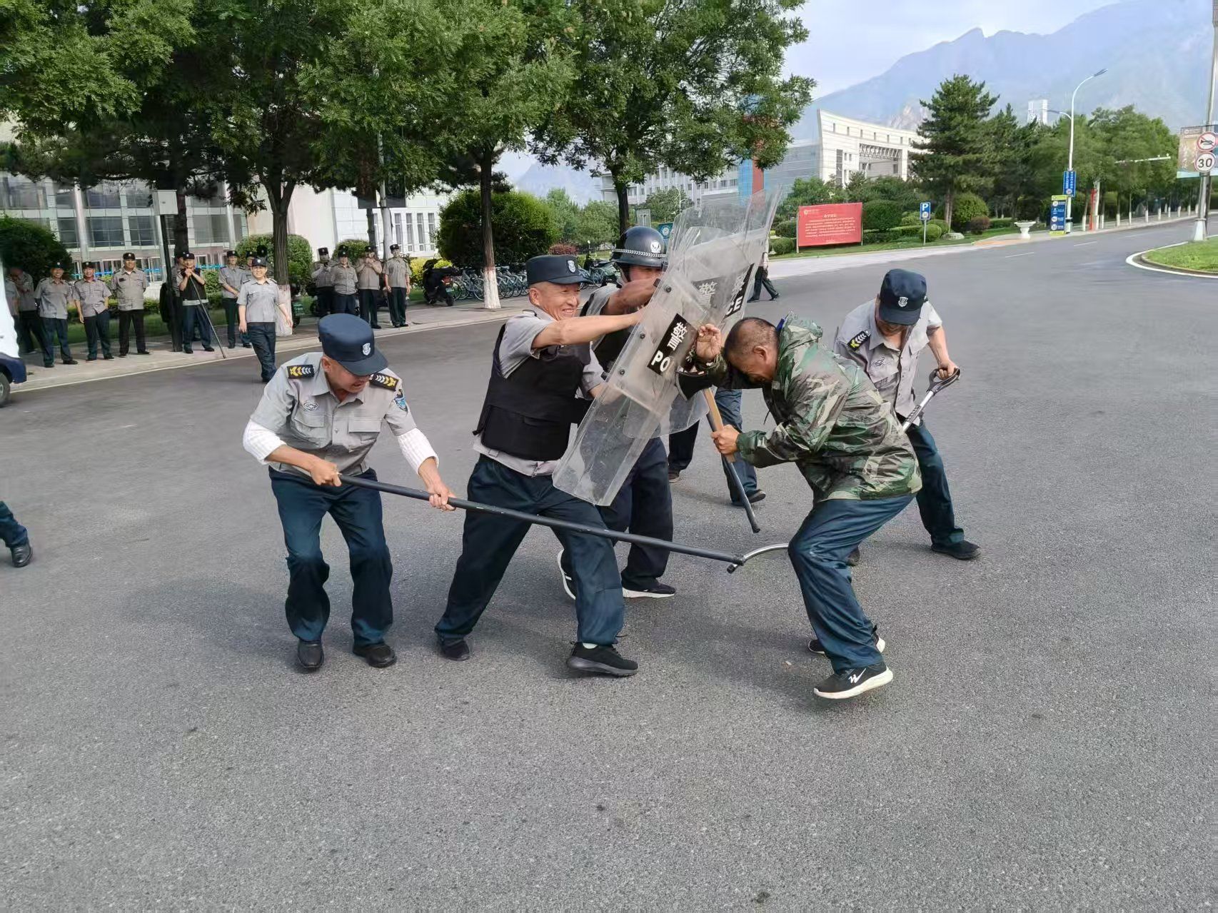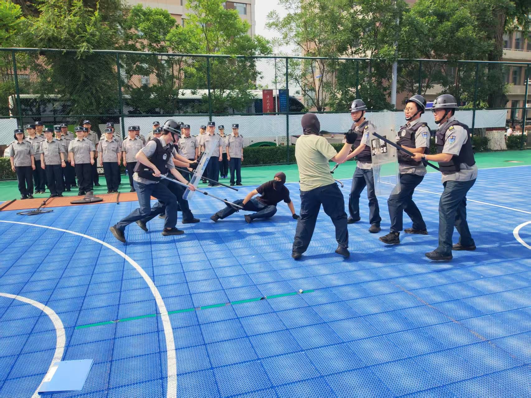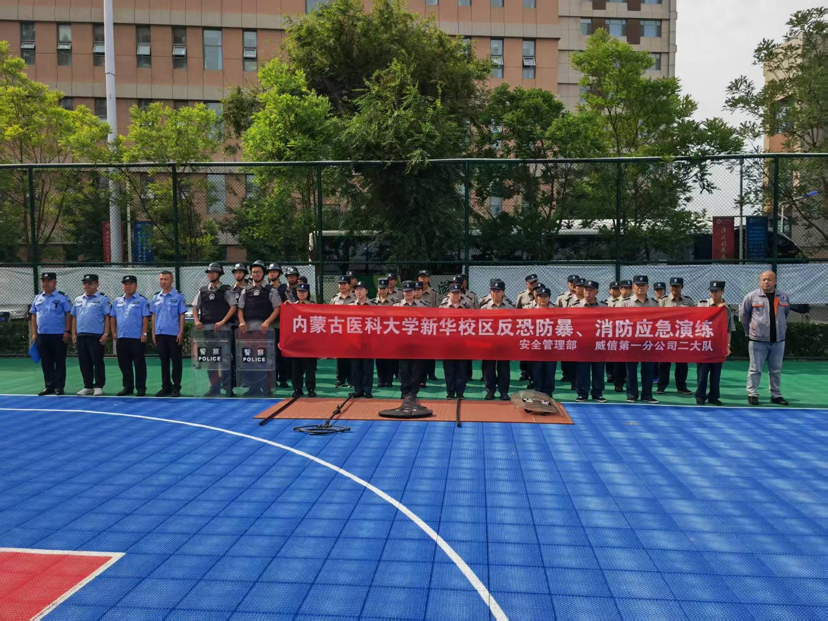 为进一步提升校园安保队伍应对突发事件的处置能力,切实保障师生生命财产安全,6月28日上午学校安全管理部组织内蒙古威信保安押运服务有限责任公司第一分公司一大队、二大队开展了反恐防暴、消防应急处置演练。